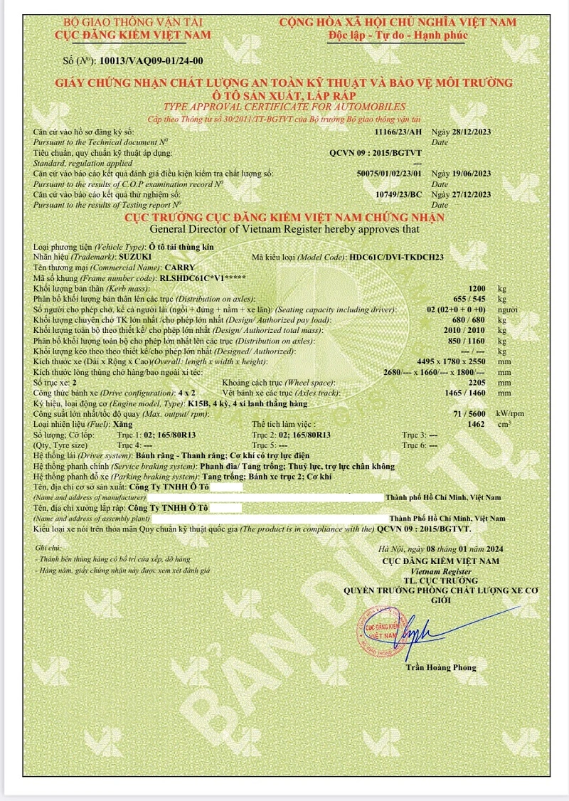 - Thông số kỹ thuật xe Suzuki Carry Pro 2024 thùng kín inox tải trọng 608kg, 705kg