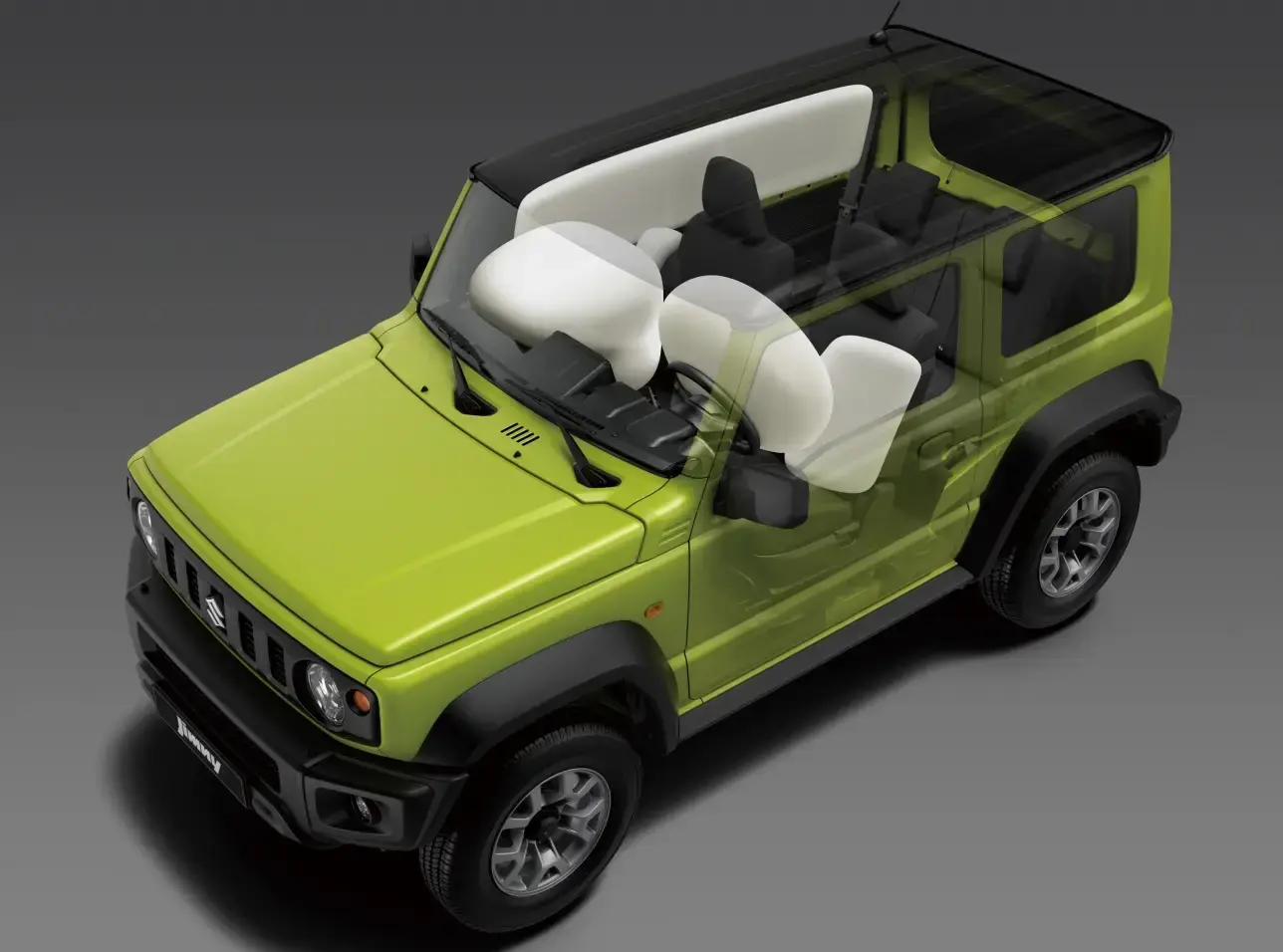 Jimny được trang bị 6 túi khí SRS cho người lái và hành khách trên xe.