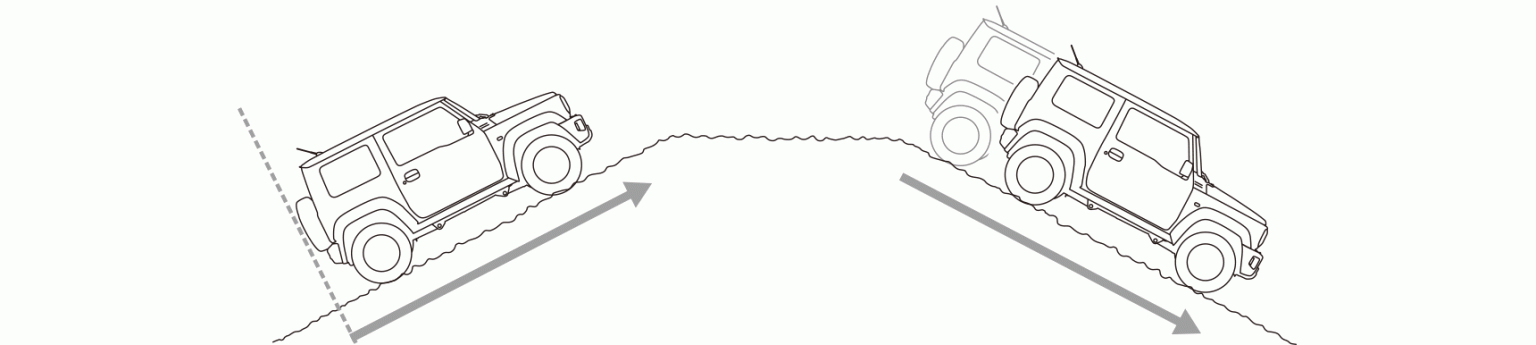 - Những con dốc lớn, những đoạn đường dốc sắc nét và chướng ngại vật không làm xước cản hoặc gầm xe Jimny.