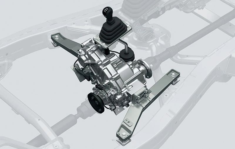 Một hộp số phụ cơ khí có thể chuyển đổi giữa 2WD và 4WD tùy thuộc vào điều kiện đường xá. Cảm giác vận hành trực tiếp của cần số giúp nâng cao cảm giác lái xe của người lái.