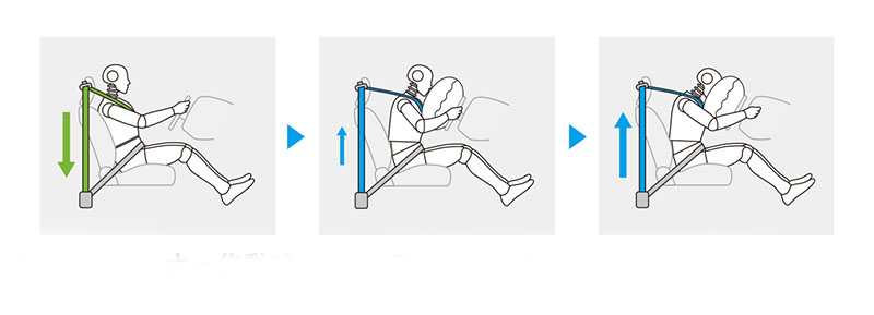 Ghế người lái và hành khách phía trước được trang bị cơ chế giới hạn lực thay đổi giúp giảm tác động lên ngực một cách hiệu quả, bên cạnh cơ chế căng trước giúp tăng cường khả năng giữ đai an toàn trong trường hợp va chạm. Ngoài ra, hàng ghế sau được trang bị cơ chế hạn chế lực theo tiêu chuẩn.