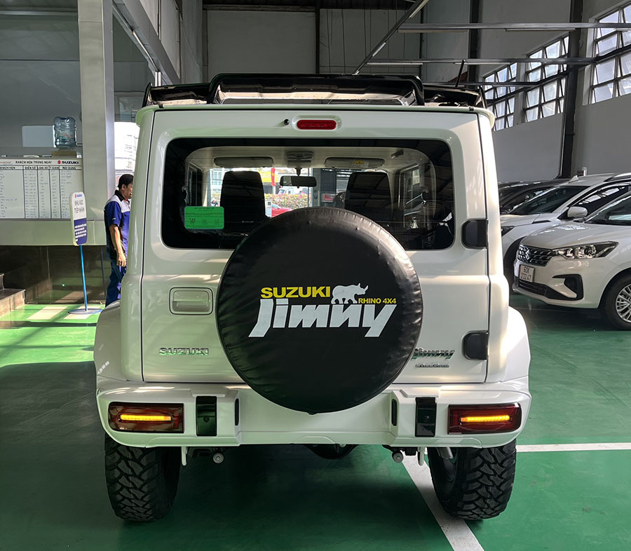 “Đặc sản” của Jimny nhất định phải kể đến đuôi xe, với lốp treo sau vô cùng tiện lợi. Trần xe phẳng được phủ nhựa cứng cáp màu đen cũng làm nổi bật lên “dáng vóc” khỏe khoắn của nó.