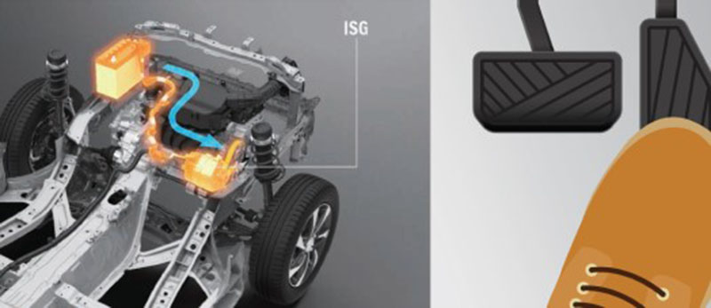 Công nghệ ISG bổ sung công suất cho động cơ giúp tốc độ động cơ nhẹ hơn và tiết kiệm nhiên liệu hơn ngay cả khi tăng tốc.